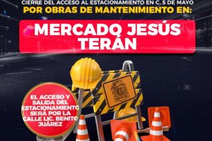 Durante el desarrollo de las labores, el acceso al estacionamiento del mercado por la calle 5 de Mayo permanecerá cerrado en su totalidad. Por tal motivo, la entrada y salida del estacionamiento se realizará exclusivamente por la calle Lic. Benito Juárez.