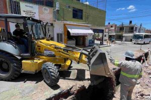 El Modelo Integral de Aguas de Aguascalientes (MIAA), trabaja en la sustitución de tubería sanitaria de 12 pulgadas de diámetro en la calle Mayor Pablo García, en el tramo que comprende de la avenida del Faisán a la calle Canario, en el fraccionamiento La Estancia.