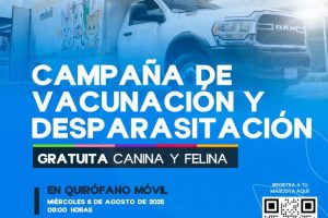 Asimismo, la titular de la Coordinación María Teresa Rendón Esquivel, invita el jueves 7 de agosto a la jornada de esterilización, vacunación antirrábica y desparasitación programada a partir de las 9:00 am en la Parroquia de Santa María Reina, en Mar Caspio esquina con Río Colorado en Colinas del Río. Para solicitar informes se pone a disposición el número 449 918 30 69.